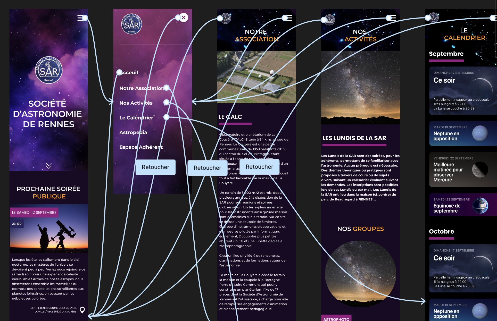Fondée par des passionnés du ciel et de la découverte scientifique, la Société d’Astronomie de Rennes (SAR) souhaitait redonner vie à son site internet, devenu obsolète au fil des années. L’ancien espace en ligne, peu ergonomique et visuellement daté, ne reflétait plus l’énergie et la modernité de l’association.